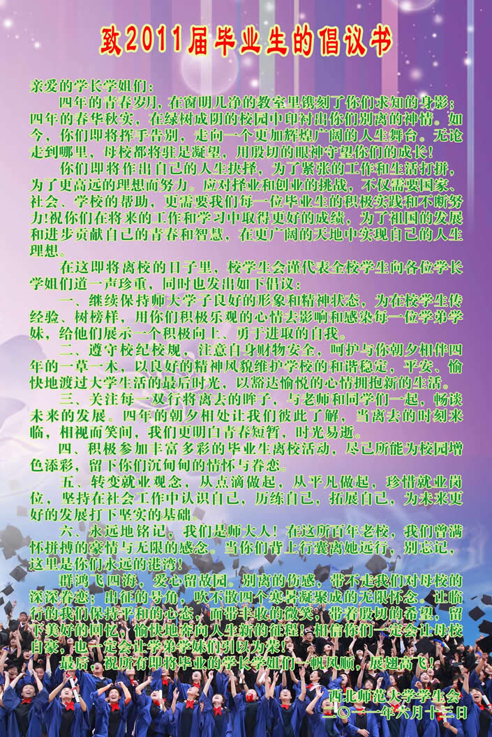 致2011届毕业生的倡议书