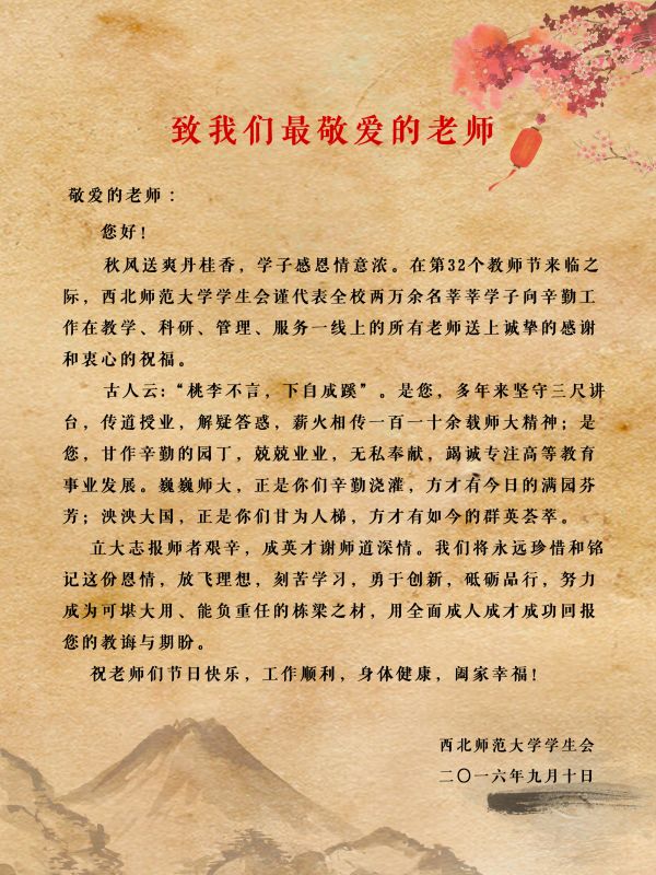致我们最敬爱的老师