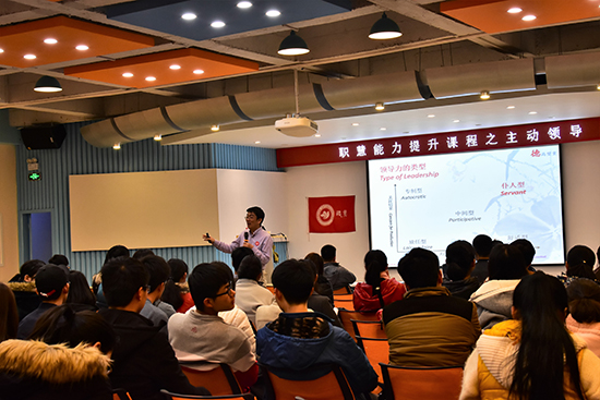 “职慧”公益项目核心发起人、清华大学自动化系博士、美国威斯康星大学化学工程系博士后梁旻,结合自己在微软、爱立信、美国Crossbow、慧点科技等公司就职经历,对我校各学院及首届创业先锋班的近900名学生开展了时间管理、克服拖延、团队合作、职场礼仪、有效沟通和主动领导为核心内容的六场专题培训。