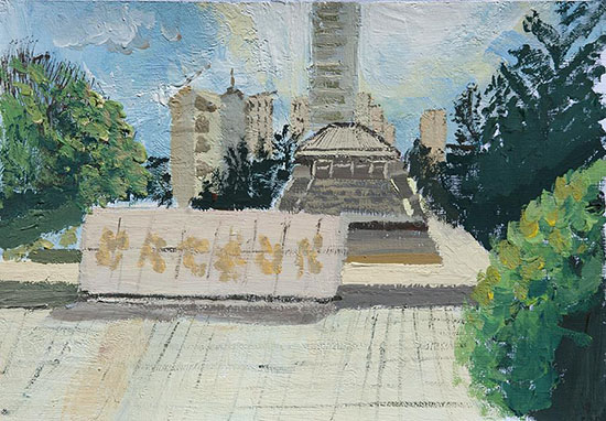 你看,画笔轻动,师大在一笔一画里清晰起来。巍巍楼宇,葱葱花木,师大在色彩斑斓里定格成诗。