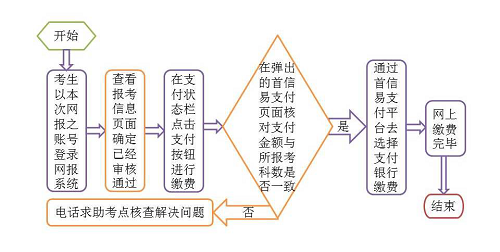 网上报名及其后续工作主要包括:考生网上填报、考点网上审核、考生网上缴费、考生上网打印准考证几个环节。