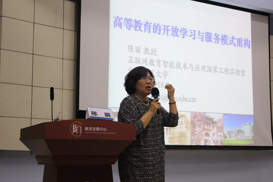 陈丽教授在题为《高等教育的开放学习与服务模式重构》的报告中阐述了人类要用技术、用新思路或方法破解教育问题。她说,当前,高等教育的服务模式正在被重构,高校应主动推动开放学习,通过“修新路,搭设社会交互平台和数据分析与汇聚”等方式发展;在“互联网+”时代,人类分享知识的方式发生了改变,因此要发展灵活、多样、开放、终身的个性化教育。