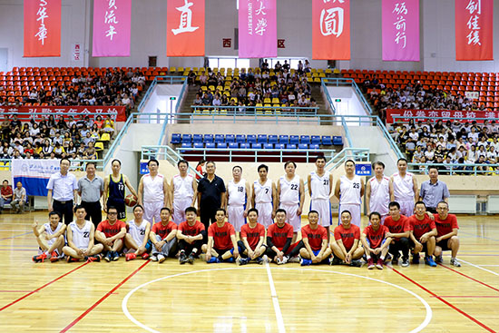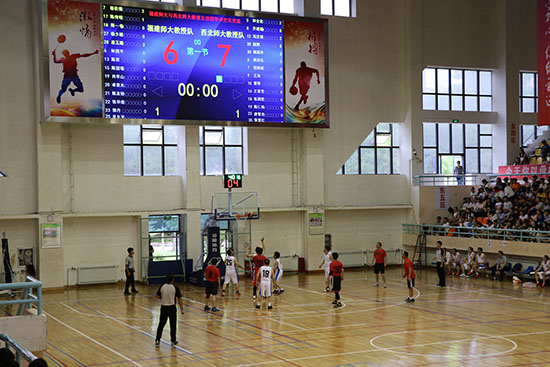 6月24日下午,两校教授互访团篮球友谊赛在体育馆拉开帷幕。福建师范大学代表队由潘玉腾、郑一书带队,8个学院15位教授组成。该球队成立于1999年,走访过全国多所大学,还曾走出国门与多个国家的高校比赛交流。我校代表队由刘玉泉带队,文学院、教育学院、社会发展与公共管理学院、法学院、体育学院、数学与统计学院、物理与电子工程学院、化学化工学院、生命科学学院等学院15位教授组成。经过激烈角逐,友好比赛,福建师大代表队以46:44的成绩客胜西北师大代表队。