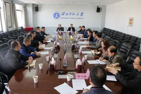 陈涛强调,西北师大要提高政治站位,高度重视政治安全、意识形态安全等相关工作,靠实工作措施,不断加强校地合作,形成良好沟通机制,维护学校安全稳定。