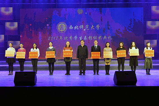 与会学校领导分别为2017年在学生思想引领、学习研究、创新创业、社会实践、志愿服务、校园文化活动等方面涌现出的先进个人和集体代表颁奖。2017年,西北师大共有8200余名本科生、研究生获得各类奖学金,奖励金额1900余万元;12000余名本科生和研究生获得各类助学金,资助总金额5500余万元。