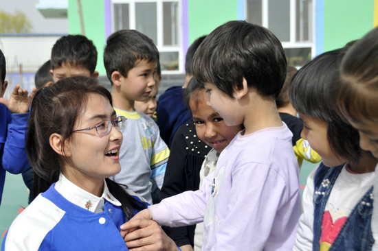 “在学校系统学习了学前教育理论知识,想通过支教这个实践平台,进一步提升教学能力。”2015级学前教育专业学生吐孙尼撒来自新疆和田,一到阿瓦提县第七国语幼儿园就和孩子们打成了一片。“我的家乡也很缺学前教育师资,毕业后我要回到和田,为新疆的教育事业贡献自己的力量。”