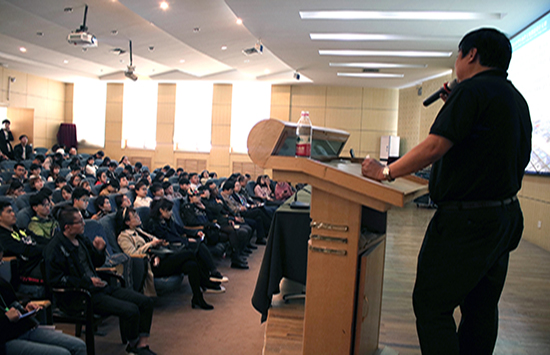 吴春辉教授代表大赛组委会致辞,并向学校赠送了《历届海洋文化创意获奖作品集》。吴春晖教授还为美术学院师生作了题为《创意蓝色梦想》的报告,全面介绍了大赛发展情况、参赛程序,鼓励广大学生积极参加2018年的一系列大赛活动,投入到建设海洋强国的事业中,为我国未来海洋事业发展做出贡献。