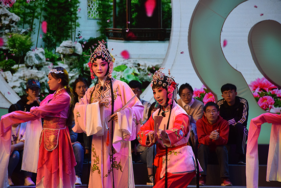 水袖盈盈,身姿柔韧,空翻筋斗,气势辉宏,来自秦腔社的同学为现场观众表演了秦腔《血泪仇》《表花》选段,赢得了节目点评嘉宾的高度评价和现场观众的阵阵掌声,展现了学生戏曲社团对传统文化的热爱与传承。