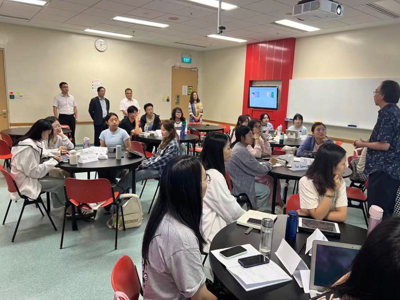 在新加坡南洋理工大学,王全进一行参加了甘肃省代表团与南洋理工大学校领导举行的座谈交流会,随后访问了国立教育学院并现场观摩教学活动。期间,王全进和国立教育学院代表就加强两校合作、师生交流等事宜进行了深入交流。