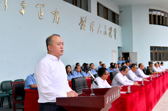 会上,王占仁向军训团授旗并宣布西北师大2024级本科生军训正式开始,王文昇宣布成立西北师大2024级本科学生军训团。