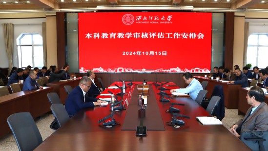 10月15日下午,西北师大召开本科教育教学审核评估工作安排会。党委书记贾宁出席并讲话,校长、党委副书记王占仁主持,副校长张明军出席会议,学校机关部门主要负责人、各学院相关负责人、直属单位及后勤保障单位相关负责人、教学督导组长等参加。