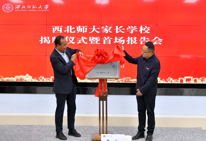 贾宁与王克军共同为西北师大家长学校揭牌。