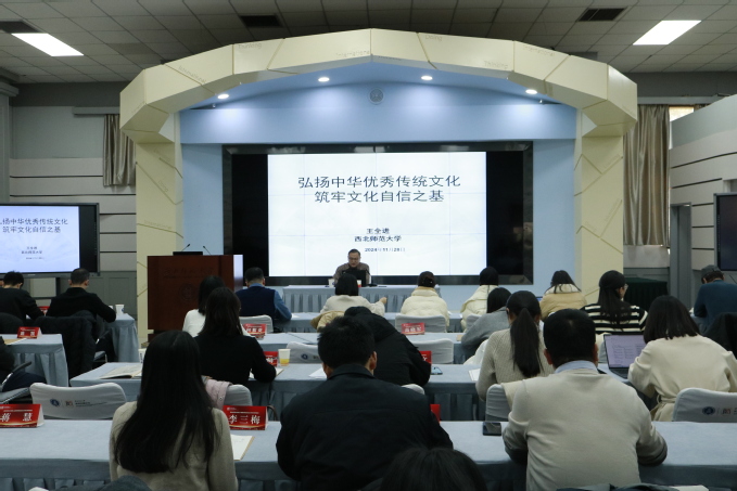 11月28日,党委副书记王全进以“弘扬中华优秀传统文化 筑牢文化自信之基”为题,为全校中青年教师授课。
