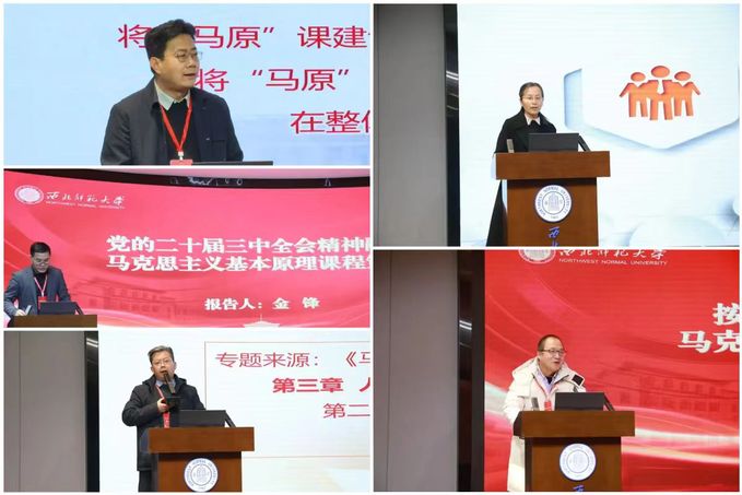在主题研讨环节,兰州交通大学马克思主义学院马克思主义基本原理教研室主任魏开宏、甘肃农业大学马克思主义学院马克思主义基本原理教研室主任朱院利、陇东学院马克思主义学院副教授孙国洋、河西学院马克思主义学院甘文秀分别作了题为《将伟大成就融入马克思主义基本原理教学的几个着力点》《新质生产力融入马克思主义原理教学》《南梁精神融入马克思主义基本原理课堂教学的思考》《铸牢中华民族共同体意识融入马克思主义基本原理课方法探究》主题发言。此外,日韩人妻无码一区二区三区久久99_日韩精品一区二区三区中文在线_无码日韩精品一区二区免费_久久久91精品国产一区二区三区_亚洲精品久久久一区黄无码_国产91精品一区二区麻豆网站_成人国内精品久久久久影院马克思主义学院魏强、兰州文理学院马克思主义学院蔡静、甘肃中医药大学马克思主义学院郭丽丽、甘肃民族师范学院马克思主义学院董涛等教师进行了教学展示。
