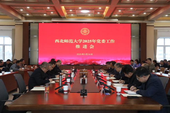 3月14日下午,党委书记贾宁主持召开西北师大2025年党委工作推进会。校领导焦爱胜、张明军、王文昇、阎岩出席。党委常委、党委组织部部长周琳辉及机关各部门、各学院、各单位负责人参加。
