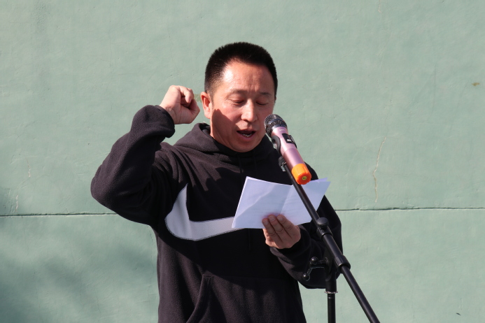 王全进宣布西北师大2025年教职工排球比赛开赛。