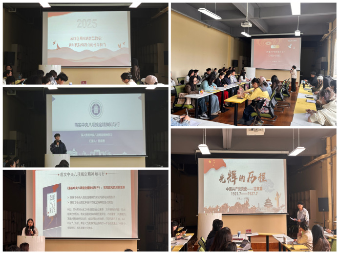 数学与统计学院学生刘翠榕用统计学的视角呈现了党的作风建设成效的多维数据集;教育科学学院学生张雪结合自身专业分享了红色基因中所蕴含的特殊教育密码。