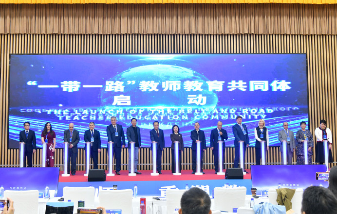 开幕式上,王占仁宣读了《‘一带一路’教师教育共同体倡议》;贾宁、曾华辉、徐妍丽与马拉特·乌马罗夫(Marat Umarov)等15位海内外嘉宾携手启动“一带一路”教师教育共同体正式成立。
